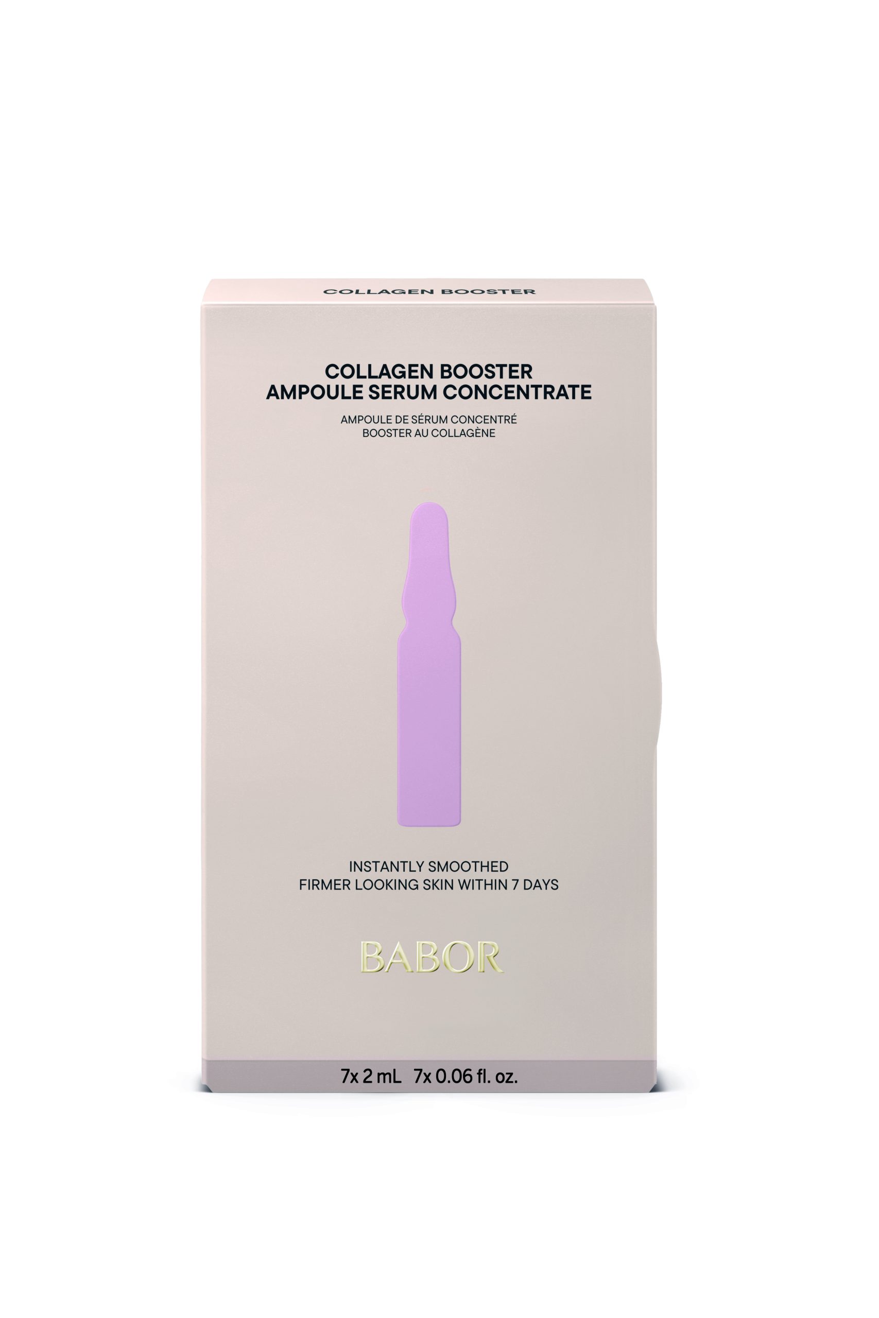 Με το πέρασμα των χρόνων, η φυσική παραγωγή κολλαγόνου στο δέρμα μειώνεται, με αποτέλεσμα να χάνει την ελαστικότητά του και να εμφανίζονται περισσότερες ρυτίδες. Οι ειδικοί της BABOR συνδύασαν την τεχνογνωσία τους για την αντιγηραντική περιποίηση της επιδερμίδας με τις Collagen Booster Ampoule Concentrates και ανέπτυξαν ένα συμπύκνωμα σχεδιασμένο για την καταπολέμηση της απώλειας του τόνου και της ελαστικότητας του δέρματος. Εμπλουτισμένες με ειδικά διαμορφωμένα συστατικά, οι Collagen Booster Ampoule Concentrates υποστηρίζουν τη διατήρηση του συμπλέγματος κολλαγόνου για να εξασφαλίσουν μεγαλύτερη ελαστικότητα και πιο νεανική όψη στο δέρμα.