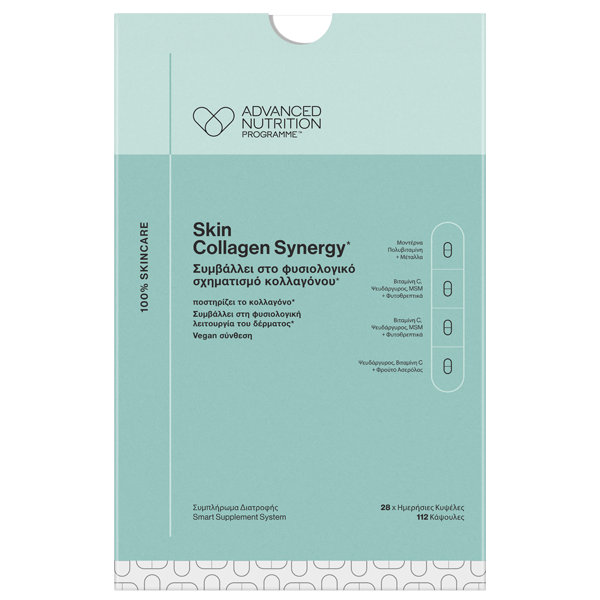 Το Skin Collagen Synergy είναι ένα επιστημονικά μελετημένο, έξυπνο σύστημα συμπληρωμάτων διατροφής που συμβάλλει στην υποστήριξη της σύνθεσης του δικού σας κολλαγόνου.