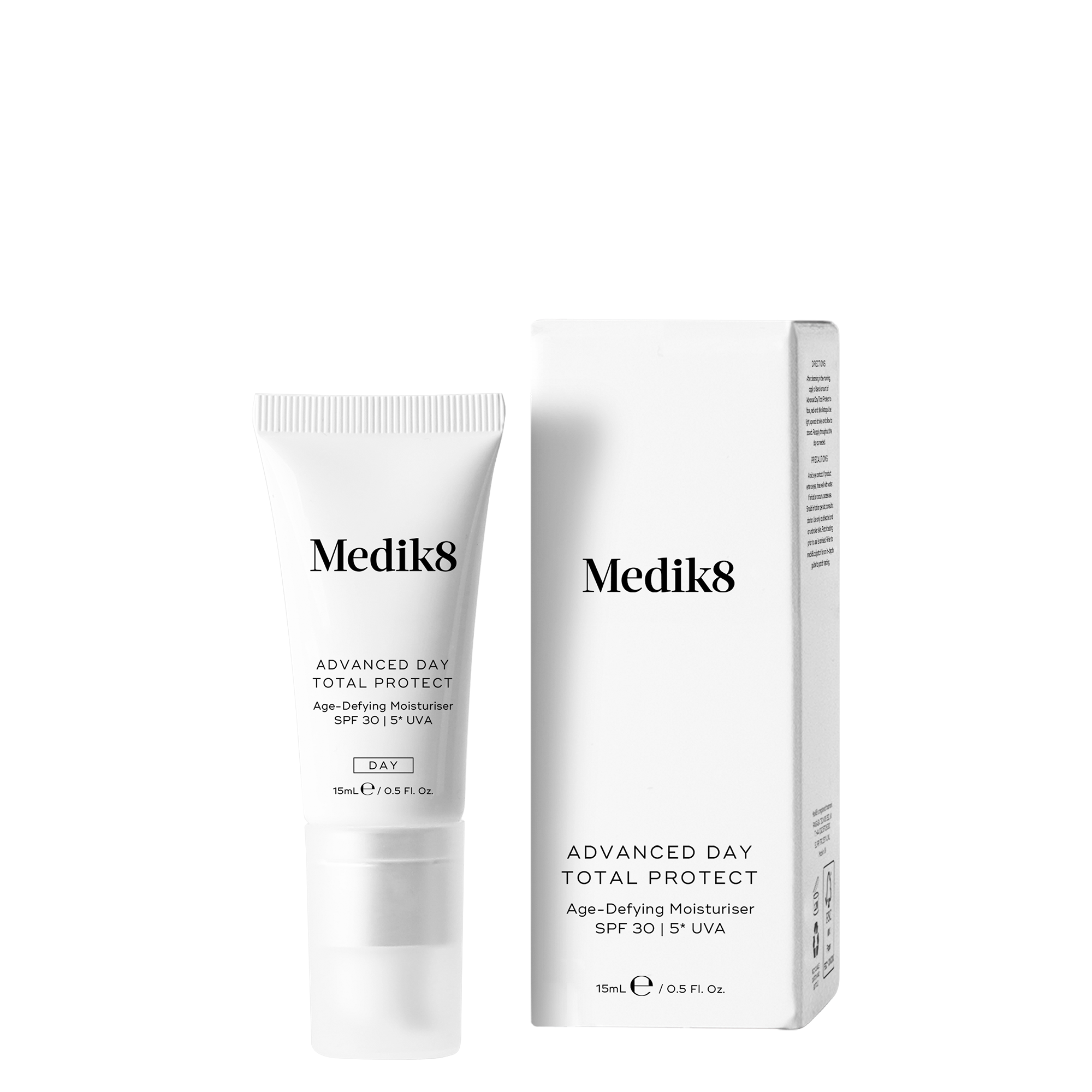 Ενυδατώστε, βοηθήστε στη λείανση και την προστασία της επιδερμίδας σας από τις βλαβερές επιδράσεις της ηλιακής ακτινοβολίας UV και το έγκαυμα, με την Advanced Day Total Protect. Αυτή η ελαφριάς υφής, ενυδατική κρέμα και αντηλιακό προϊόν, όλα σε ένα, προσφέρει προστασία SPF 30 και 5* UVA, καθώς και ισχυρή άμυνα ενάντια στους περιβαλλοντικούς επιθετικούς παράγοντες, συμπεριλαμβανομένων του μπλε φωτός, της ατμοσφαιρικής ρύπανσης, της υπέρυθρης ακτινοβολίας και της γλυκοζυλίωσης (βλάβη στο κολλαγόνο και την ελαστίνη του δέρματος).